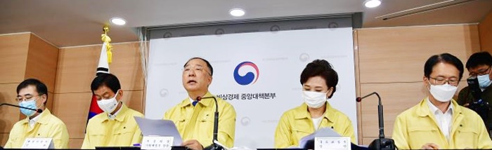 | È«³²±â °æÁ¦ºÎÃѸ® °â ±âȹÀçÁ¤ºÎ Àå°üÀÌ 10ÀÏ ¿ÀÀü Á¤ºÎ¼¿ïû»ç¿¡¼ ¿¸° Á¦10Â÷ ºñ»ó°æÁ¦ Áß¾Ó´ëÃ¥º»ºÎ ȸÀǸ¦ ¸¶Ä£ ÈÄ ºê¸®Çη뿡¼ ±âÀÚµéÀÇ Áú¹®¿¡ ´äÇϰí ÀÖ´Ù. ¿À¸¥ÂÊÀº ±èÇö¹Ì ±¹ÅäºÎÀå°ü. |