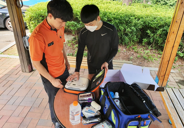 [½Ã»çÄÚ¸®¾ÆÀú³Î=Á¤Á¾¹Î ¼±ÀÓ±âÀÚ] °ÅÁ¦¼Ò¹æ¼(¼Àå Á¶±æ¿µ)´Â ¸¶À»(µ¿Ã¢) üÀ°´ëȸ·ÃàÁ¦, Çб³ ¼Òdz µî °¢Á¾ Çà»ç Áß °©ÀÛ½º·± ½ÉÁ¤Áö »ç°í¸¦ ¿¹¹æÇϱâ À§ÇØ ÀÚµ¿½ÉÀåÃæ°Ý±â(AED) ¹«·á ´ë¿© ¼ºñ½º¸¦ ½Ç½ÃÇÑ´Ù°í ¹àÇû´Ù.