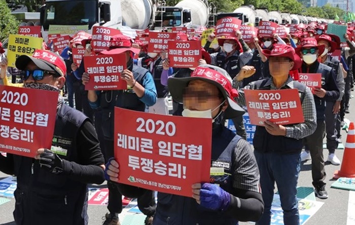 [½Ã»çÄÚ¸®¾ÆÀú³Î=Á¤Á¾¹Î ¼±ÀÓ±âÀÚ] °æ³² 5°³ Áö¿ª ·¹¹ÌÄÜ ¿î¼Û³ëµ¿ÀÚµéÀÌ ·¹¹ÌÄÜ ¿î¼Û·á ÀλóÀ» ¿ä±¸Çϸç 13ÀϺÎÅÍ ¹«±âÇÑ ÆÄ¾÷¿¡ µ¹ÀÔÇϱâ·Î ÇÏ¸é¼ °Ç¼³ÇöÀå¿¡ ºñ»óÀÌ °É·È´Ù.