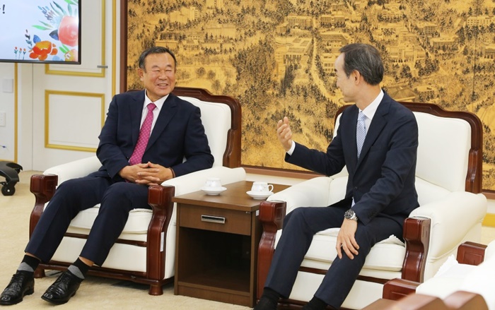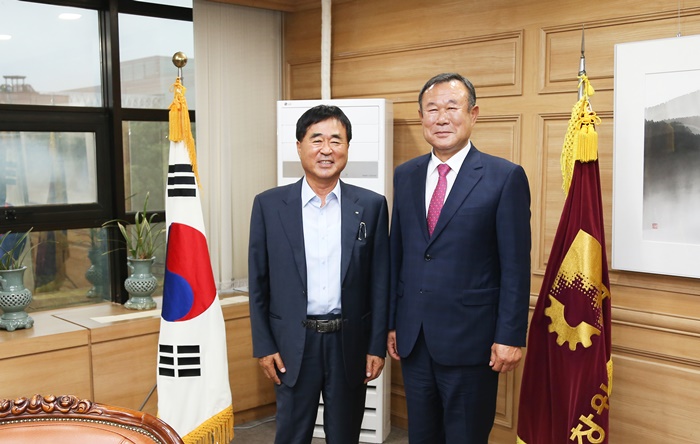 | â¿ø½ÃÀÇȸ ÀÌÄ¡¿ì ÀÇÀå(¿ÞÂÊ)ÀÌ Ã¢¿ø´ëÇб³¸¦ ¹æ¹®, ÀÌÈ£¿µ ÃÑÀå°ú ȯ´ãÇϰí ÀÖ´Ù. |