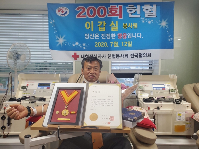 ÀÌ ¾¾´Â Áö³ 12ÀÏ ÇåÇ÷ 200ȸ¸¦ ´Þ¼ºÇØ ´ëÇÑÀû½ÊÀÚ»ç Ç÷¾×°ü¸®º»ºÎ·ÎºÎÅÍ ‘¸í¿¹´ëÀå’À» ¼ö»óÇß´Ù.