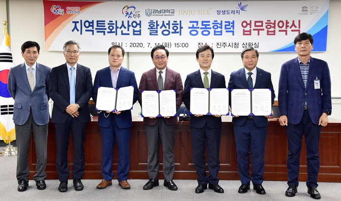 [½Ã»çÄÚ¸®¾ÆÀú³Î=ÀÌȯ¼ö ±âÀÚ] °æ³²´ëÇб³(ÃÑÀå ¹ÚÀç±Ô)´Â 14ÀÏ ¿ÀÈÄ 3½Ã ÁøÁÖ½Ãû¿¡¼ ÁøÁÖ½Ã(½ÃÀå Á¶±ÔÀÏ), ¢ß½ÇŰ¾È(ÀÌ»çÀå ¹ÚÅÂÇö), ¢ßÀå»ýµµ¶óÁö(´ëÇ¥ ÀÌ¿µÃá)¿Í Áö¿ªÆ¯È»ê¾÷ Ȱ¼ºÈ¸¦ À§ÇÑ °øµ¿Çù·Â ¾÷¹«Çù¾àÀ» ü°áÇß´Ù.