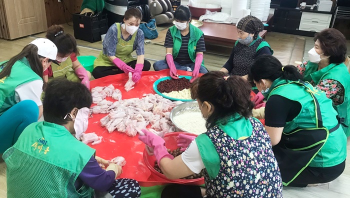 [½Ã»çÄÚ¸®¾ÆÀú³Î=Á¤Á¾¹Î ¼±ÀÓ±âÀÚ] °ÅÁ¦½Ã ¾ÆÁÖµ¿ »õ¸¶À» ºÎ³àȸ(ȸÀå ¹Ú¹Ì¾Ö) ȸ¿øµéÀÌ Ãʺ¹À» ÇÏ·ç ¾ÕµÐ 15ÀÏ »ï°èÅÁ 280¸¶¸®¸¦ ÁغñÇØ ¾ÆÁÖµ¿ °ÅÁÖ Ãë¾à°èÃþ°ú ³ª´©´Â Çà»ç¸¦ °¡Á³´Ù.