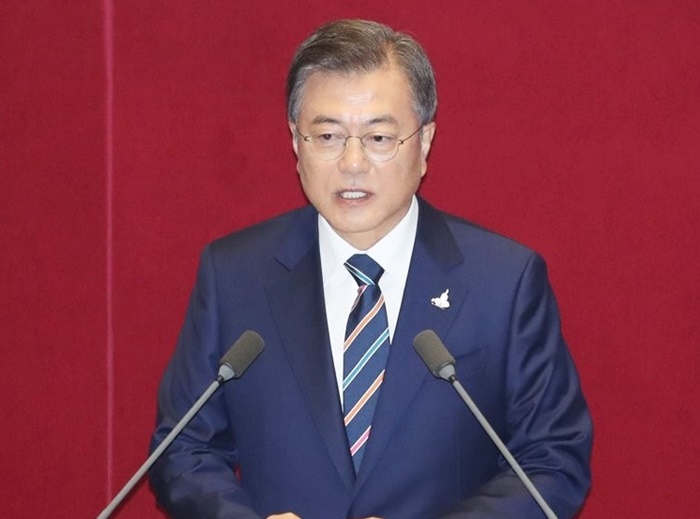 [½Ã»çÄÚ¸®¾ÆÀú³Î=±è¿¬ÇÐ ±âÀÚ] ¹®ÀçÀÎ ´ëÅë·ÉÀº 16ÀÏ ¿ÀÈÄ 21´ë ±¹È¸ °³¿ø½Ä¿¡ Âü¼®, ¿¬¼³À» ÅëÇØ "Áö±Ý ÃÖ°íÀÇ ¹Î»ý ÀÔ¹ý °úÁ¦´Â ºÎµ¿»ê ´ëÃ¥"À̶ó°í ¸»Çß´Ù.