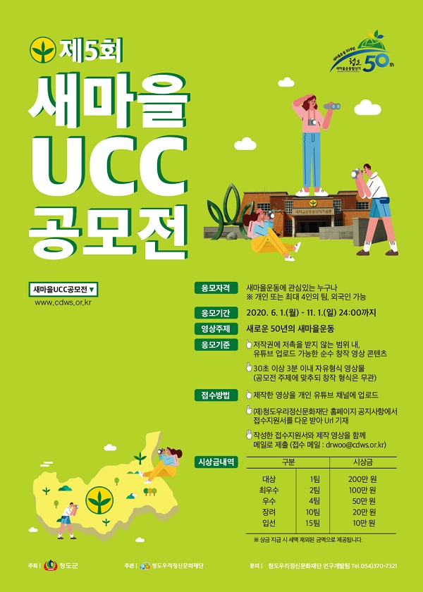 [½Ã»çÄÚ¸®¾ÆÀú³Î=À̵¿¿ì ±âÀÚ] ûµµ¿ì¸®Á¤½Å¹®ÈÀç´Ü(ÀÌ»çÀå À̽ÂÀ² ûµµ±º¼ö)Àº '»õ·Î¿î 50³âÀÇ »õ¸¶À»¿îµ¿'À̶ó´Â ÁÖÁ¦·Î Á¦5ȸ »õ¸¶À»UCC°ø¸ðÀüÀ» °³ÃÖÇÑ´Ù°í ¹àÇû´Ù.