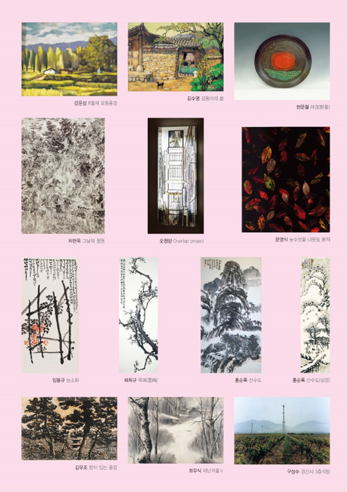 À̹ø Àü½Ã´Â ‘dz°æ’À» ÁÖÁ¦·Î ¼¼ °¡Áö Å׸¶·Î ³ª´¶´Ù. ¡â ù° ‘ÀÚ¿¬Ç³°æ’Àº ÀÛ°¡ °íÀ¯ÀÇ ¹æ¹ýÀ¸·Î ÀÚ¿¬À» ÇØ¼®ÇÏ´Â ½Ã°¢À» µå·¯³½´Ù. ¡â µÑ° ‘ÀÏ»ódz°æ’À» Å׸¶·Î ÇÑ ±Ù´ëÀÛ°¡¿Í û³âÀÛ°¡µéÀÇ È¸ÈÀÛǰÀ» ÅëÇØ ½Ã´ë¿¡ µû¸¥ ÀÏ»ódz°æÀÇ º¯È¸¦ º¸¿©ÁØ´Ù. ¡â ¼Â° ‘±â¾ïdz°æ’À» Å׸¶·Î ¿ì¸®°¡ ±â¾ïÇÏ´Â ½Ã°£°ú Àå¼Ò¸¦ È¸È¿Í °ø¿¹, »çÁø, ¼³Ä¡, ¹®ÀÎÈ µî ´Ù¾çÇÑ ¸Åü¿Í ¹æ¹ýÀ» ÅëÇØ ÇØ¼®ÇÑ ÀÛǰÀ» °¨»óÇÑ´Ù.