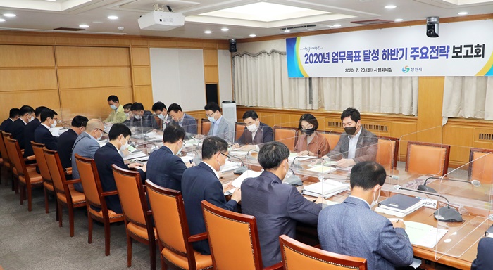 À̹ø º¸°íȸ´Â â¿ø½ÃÀÇ ¿ÃÇØ ½ÃÁ¤¸ñÇ¥ÀÎ ‘´ëµµ¾à°ú ´ëÇõ½Å’ ½ÇÇöÀ» À§ÇØ ÇϹݱ⠽ÃÁ¤¿î¿µ Ãßµ¿·ÂÀ» °ÈÇϰíÀÚ Äڷγª19·Î Áö¿¬µÈ ºÎ¼º° ¾÷¹«¸ñÇ¥ ÃßÁø»óȲÀ» Á¡°ËÇÏ°í ºÎÁø »ç¾÷¿¡ ´ëÇÑ ¸ñÇ¥´Þ¼º Àü·«À» ³íÀÇÇϱâ À§ÇØ ¸¶·ÃµÆ´Ù.