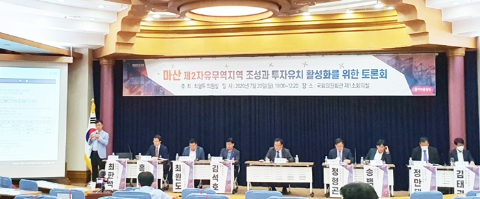 | ±¹È¸ ¹Ì·¡ÅëÇÕ´ç ÃÖÇüµÎ ÀÇ¿øÀÌ ÁÖÃÖÇÑ ‘¸¶»ê Á¦2ÀÚÀ¯¹«¿ªÁö¿ª ÃßÁø Åä·Ðȸ'°¡ 20ÀÏ ±¹È¸ ÀÇ¿øÈ¸°ü¿¡¼ ¿¸®°í ÀÖ´Ù. |