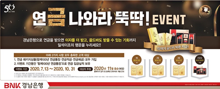 [½Ã»çÄÚ¸®¾ÆÀú³Î=±èÈñ¿µ ±âÀÚ] BNK°æ³²ÀºÇàÀº ÇÔ²²100³â ¿¬±Ý ÆÐŰÁö »óǰ Ãâ½Ã¸¦ ±â³äÇØ ¿À´Â 10¿ù ¸»±îÁö ‘¿¬±Ý(ÑÑ) ³ª¿Í¶ó ¶Òµü À̺¥Æ®’¸¦ ÁøÇà ÁßÀ̶ó°í 22ÀÏ ¹àÇû´Ù.