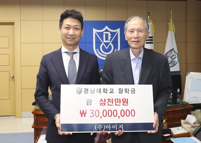 [½Ã»çÄÚ¸®¾ÆÀú³Î=ÀÌȯ¼ö ±âÀÚ] °æ³²´ëÇб³(ÃÑÀå ¹ÚÀç±Ô)´Â 23ÀÏ ¿ÀÈÄ 4½Ã 30ºÐ ÃÑÀå½Ç¿¡¼ ¢ßIEG(´ëÇ¥ÀÌ»ç ±èâÀÏ)·ÎºÎÅÍ ÀåÇÐ±Ý 3,000¸¸ ¿øÀ» Àü´Þ ¹Þ¾Ò´Ù.