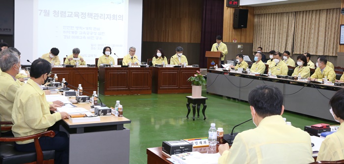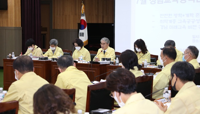 [½Ã»çÄÚ¸®¾ÆÀú³Î=±èÈñ¿µ ±âÀÚ] °æ³²±³À°Ã»Àº 24ÀÏ ¿ÀÀü º»Ã» °´ç¿¡¼ ±³À°°¨, ºÎ±³À°°¨, ±¹Àå, ºÎ¼Àå, ±³À°Áö¿øÃ» ±³À°Àå ¹× Á÷¼Ó±â°ü ±â°üÀå ÃÑ 59¸íÀÌ Âü¼®ÇÑ °¡¿îµ¥ '7¿ù û·Å±³À°Á¤Ã¥°ü¸®ÀÚȸÀÇ'¸¦ °³ÃÖÇß´Ù.