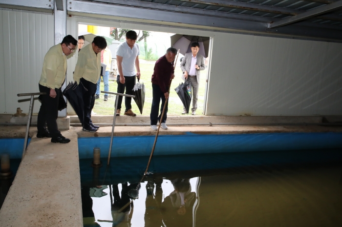 [½Ã»çÄÚ¸®¾ÆÀú³Î=¼ÕÁ¤Çö ±âÀÚ] ÃÖ±Ù ÀÎõÀ» ºñ·ÔÇÑ ÀϺÎÁö¿ª ¼öµ¾¹°¿¡¼ À¯ÃæÀÌ ¹ß°ßµÊ¿¡ µû¶ó À±»ó±â ±º¼ö°¡ °ü³» Á¤¼öÀå¿¡ ´ëÇÑ ÇöÀåÁ¡°ËÀ» ½Ç½ÃÇß´Ù.