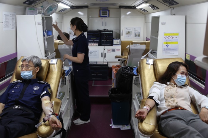 ºÎ»ê±¸Ä¡¼Ò ±³Á¤°ø¹«¿ø 29¸íÀÌ Äڷγª19·Î Ç÷¾×¼ö±Þ¿¡ ¾î·Á¿òÀ» °Þ´Â ÀÇ·á ÇöÀå¿¡ µµ¿òÀ» Áشٴ ¸¶À½À¸·Î ÇåÇ÷¿¡ Âü¿©Çß´Ù.