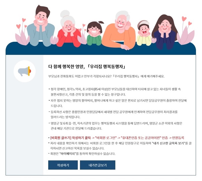 ÇÏÁö¸¸, Äڷγª19 »óȲ¿¡ Á÷¸éÇÏ¸é¼ ºñ´ë¸é ÇàÁ¤ ¼ºñ½º·ÎÀÇ Àüȯ Çʿ伺À¸·Î ¿Â¶óÀÎ ¼ÒÅëⱸ¸¦ °³¼³ÇØ ÀÎÅÍ³Ý Á¢±Ù¼ºÀÌ ³ôÀº ÃâÇâÀεéÀÌ ºÎ¸ð¿Í °ü·ÃµÈ »ó´ã ³»¿ëÀ» ‘¿ì¸®Áý Çູµ¿ÇàÀÚ’ Äڳʿ¡ ¿Ã¸± ¼ö ÀÖµµ·Ï Çß´Ù.