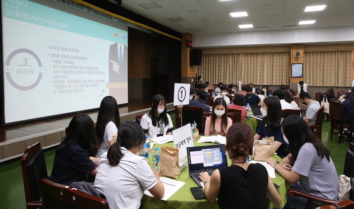 [½Ã»çÄÚ¸®¾ÆÀú³Î=±èÈñ¿µ ±âÀÚ] °æ³²µµ±³À°Ã»ÀÌ 5ÀÏ ¿ÀÈÄ 2½Ã º»Ã» 2Ãþ °´ç¿¡¼ µðÁöÅÐ ¼ºÆø·Â ±ÙÀý°ú Àç¹ß ¹æÁö¸¦ À§ÇØ ±³À°°øµ¿Ã¼°¡ Âü¿©ÇÏ´Â ¿øÅ¹´ëÅä·Ðȸ¸¦ °³ÃÖÇß´Ù.