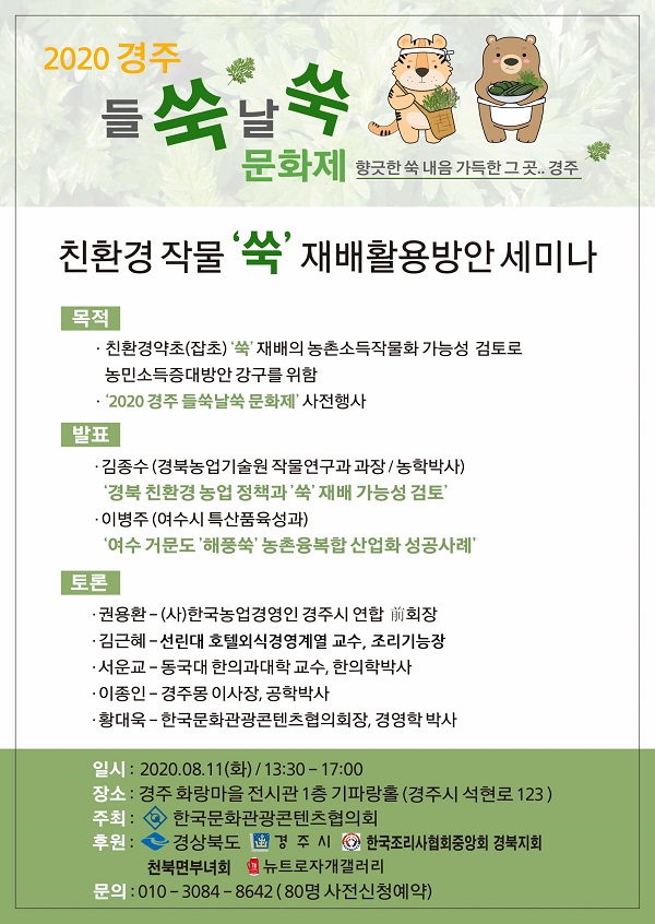 2020³âµµ °æ»óºÏµµ °ü±¤ÁøÈï±â±Ý Áö¿ø»ç¾÷¿¡ ¼±Á¤µÈ ‘2020 °æÁÖ µé¾¦³¯¾¦ ¹®ÈÁ¦’ÀÇ »çÀüÇà»ç·Î °³ÃֵǴ À̹ø ¼¼¹Ì³ª´Â ģȯ°æ¾àÃÊ(ÀâÃÊ) ‘¾¦’ÀÇ ³óÃ̼ҵæ ÀÛ¹°È °¡´É¼º¿¡ ´ëÇÑ ½ÉµµÀÖ´Â Åä·ÐÀ» À§ÇØ °³ÃֵȴÙ.