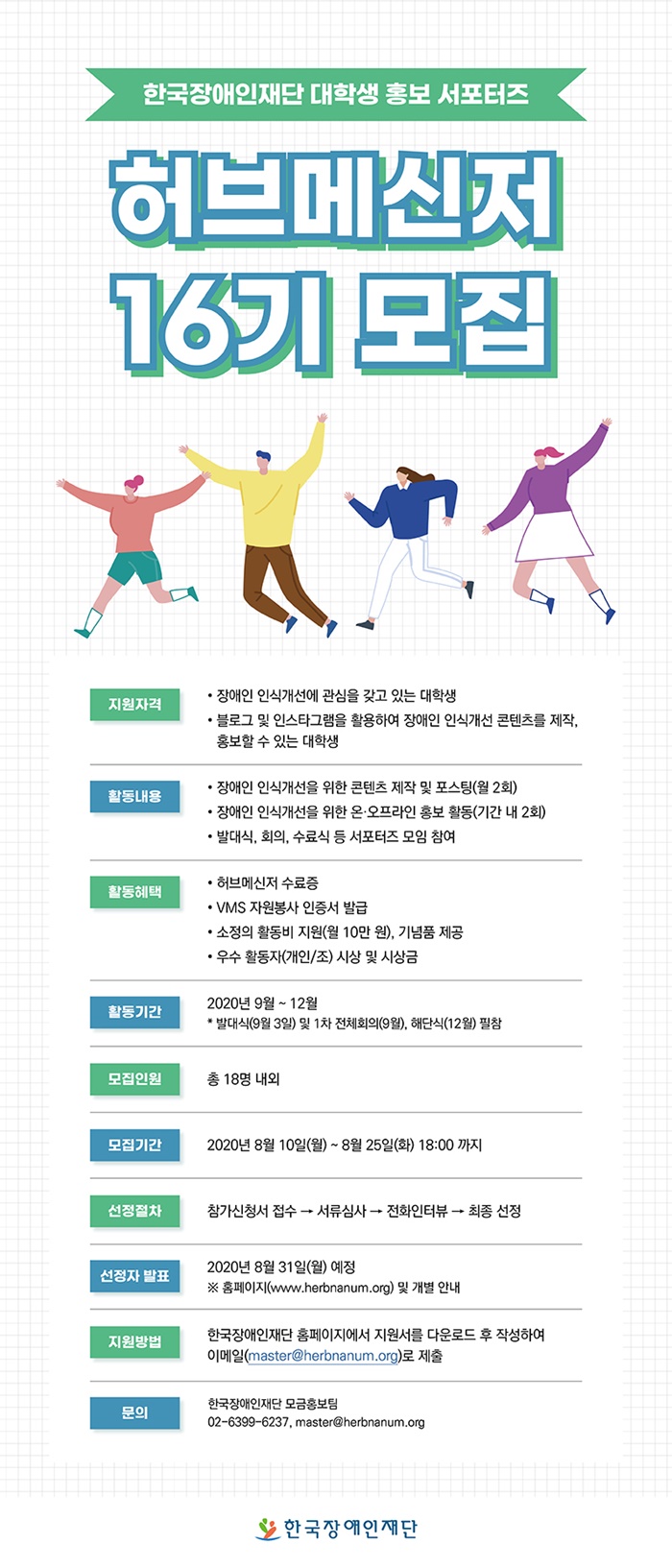 [½Ã»çÄÚ¸®¾ÆÀú³Î=ÀÌȯ¼ö ±âÀÚ] Çѱ¹Àå¾ÖÀÎÀç´Ü(ÀÌ»çÀå À̼º±Ô)ÀÌ 10ÀϺÎÅÍ 25ÀϱîÁö ´ëÇлý È«º¸ ¼Æ÷ÅÍÁî ‘Çãºê¸Þ½ÅÀú’ 16±â¸¦ ¸ðÁýÇÑ´Ù.