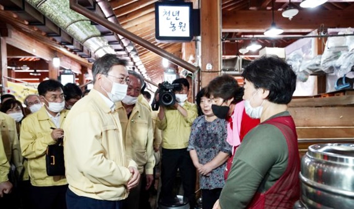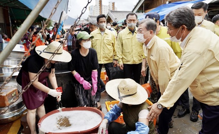 | ÁýÁßÈ£¿ì ÇÇÇØÇöÀå ¹æ¹®¿¡ ³ª¼± ¹®ÀçÀÎ ´ëÅë·ÉÀÌ 12ÀÏ Àü³² ±¸·Ê±º ±¸·Ê5ÀϽÃÀåÀ» ã¾Æ »óÀεé°ú ´ëÈÇϰí ÀÖ´Ù. |