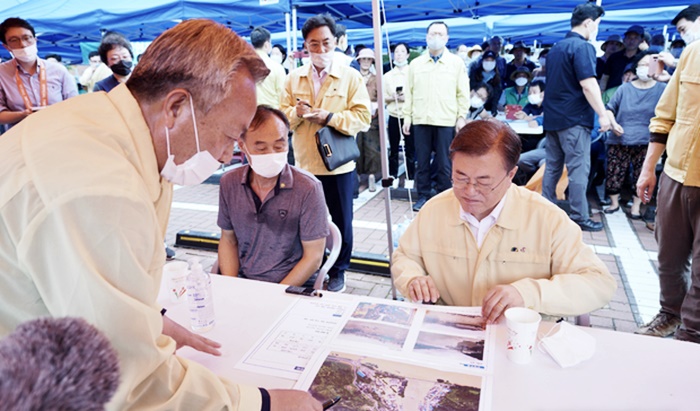 ¹®ÀçÀÎ ´ëÅë·ÉÀº À̳¯ KTX ¿Â÷ ³» ȸÀǽǿ¡¼ ÁýÁßÈ£¿ì ÇÇÇØ »óȲ°ú º¹±¸ Áö¿ø°èȹÀ» º¸°í¹Þ´Â ÀÚ¸®¿¡¼ ÁýÁßÈ£¿ì·Î ÇÇÇØ¸¦ º» Áö¿ªÀ» Ưº°Àç³Áö¿ªÀ¸·Î ÁöÁ¤ÇÏ´Â ¹®Á¦¿Í °ü·ÃÇØ "½Ã±º ´ÜÀ§·Î ¿©°ÇÀÌ ¾È µÇ¸é À¾¸éµ¿ ´ÜÀ§·Î ¼¼ºÎÀûÀ¸·Î ÁöÁ¤ÇÏ´Â ¹æ¾ÈÀ» °ËÅäÇ϶ó"°í Áö½ÃÇß´Ù.