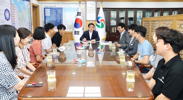 Ç㼺¹« â¿ø½ÃÀåÀº 12ÀÏ Áý¹«½Ç¿¡ 2020³â »ó¹Ý±â À¸¶ä⋅Ä£Àý°ø¹«¿øÀ» ÃÊÃ»ÇØ °£´ãȸ¸¦ °®°í À̰°ÀÌ °Ý·ÁÇß´Ù.