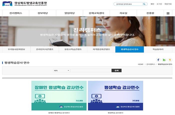 À̹ø ¿¬¼ö´Â Äڷγª19 Àå±âÈ¿¡ µû¸¥ ¾ðÅÃÆ® ½Ã´ë È帧¿¡ µû¶ó °æ»óºÏµµÆò»ý±³À°ÁøÈï¿ø ȨÆäÀÌÁö(www.gile.or.kr)¸¦ ÅëÇØ ¿Â¶óÀÎÀ¸·Î ÁøÇàµÈ´Ù.