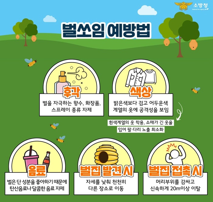¹ú½îÀÓÀ» ¿¹¹æÇϱâ À§Çؼ´Â ¹úÀ» ÀÚ±ØÇÏ´Â Çâ¼ö, ÈÀåǰ, ½ºÇÁ·¹ÀÌ Á¾·ù¸¦ ÀÚÁ¦ÇÏ°í ¹úÁý Á¢ÃË ½Ã¿¡´Â ¸Ó¸® ºÎÀ§¸¦ °¨½Î°í ½Å¼ÓÇÏ°Ô 20mÀÌ»ó ¾ÈÀüÇÑ °÷À¸·Î ´ëÇÇÇÑ´Ù.