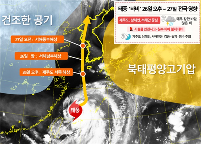 µû¶ó¼ 26Àϰú 27ÀÏ Àü±¹ÀÌ ÅÂdzÀÇ ¿µÇâ±Ç¿¡ µé¾î°¬´Ù.