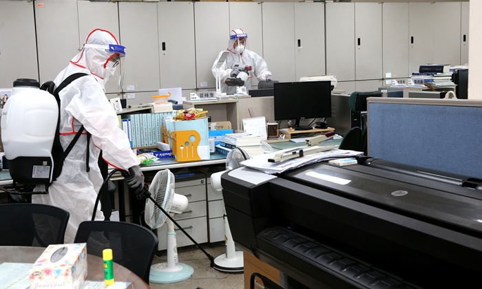 [½Ã»çÄÚ¸®¾ÆÀú³Î=Á¤Á¾¹Î ¼±ÀÓ±âÀÚ] ±èÇØ½Ã °£ºÎȸÀÇ¿¡ Âü¼®ÇÑ »êÇÏ ±â°üÀåÀÌ ½ÅÁ¾ Äڷγª¹ÙÀÌ·¯½º °¨¿°Áõ(Äڷγª19) È®Áø ÆÇÁ¤À» ¹ÞÀ¸¸é¼ 26ÀÏ ±èÇØ½Ãû°ú ÀÇȸ °Ç¹° û»ç, ±èÇØµµ½Ã°³¹ß°ø»ç »ç¹«½ÇÀÌ Àü¸é Æó¼âµÆ´Ù.