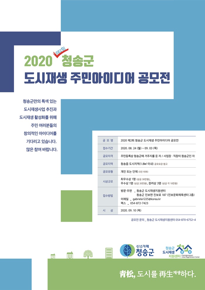 ±ºÀº û¼Û¸¸ÀÇ Æ¯»ö ÀÖ´Â µµ½ÃÀç»ý»ç¾÷ ÃßÁø ¹× Ȱ¼ºÈ¿Í âÀÇÀûÀÎ µµ½ÃÀç»ý ¾ÆÀ̵ð¾î¸¦ ¹ß±¼Çϱâ À§ÇØ Áö³ÇØ¿¡ ÀÌ¾î ¿ÃÇØ µÎ¹øÂ°·Î ‘Á¦2ȸ û¼Û±º µµ½ÃÀç»ý ÁֹξÆÀ̵ð¾î °ø¸ðÀü’À» ±âȹÇÏ°Ô µÆ´Ù.