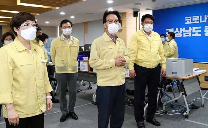 ÇÑÆí, °æ»ó³²µµ Äڷγª19 Á¾ÇÕ»óȲ½Ç¿¡´Â 3°³¹Ý 40¿©¸íÀÇ Á÷¿øµéÀÌ 24½Ã°£ ±³´ë·Î ±Ù¹«Çϰí ÀÖÀ¸¸ç, Äڷγª19 È®»ê ¹æÁö¸¦ À§ÇÑ ÅëÇÕ »óȲ ¹× ´ëÀÀü°è °ü¸®, Á¤ºÎ·½Ã±º °øÁ¶ °È µî ÄÜÆ®·Ñ Ÿ¿ö·Î¼ÀÇ ¿ªÇÒÀ» Ãæ½ÇÈ÷ ÇØ³»°í ÀÖ´Ù.