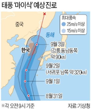 [½Ã»çÄÚ¸®¾ÆÀú³Î=Á¤Á¾¹Î ¼±ÀÓ±âÀÚ] Á¦9È£ ÅÂdz ¸¶ÀÌ»è(Maysak)ÀÌ 9¿ù 2ÀÏ ¼±ÍÆ÷ ÇØ»óÀ» Áö³ª 3ÀÏ »õº® â¿ø°ú ºÎ»êÀ» Áö³ª ¿µ³²Áö¿ªÀ» °üÅëÇÒ °ÍÀ¸·Î º¸ÀδÙ.
