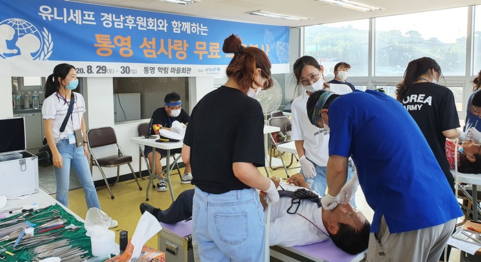 À¯´Ï¼¼ÇÁ °æ³²ÈÄ¿øÈ¸¿Í ÇÔ²² ÇÏ°í ±¸´öºÀ»çȸ°¡ ÁÖÃÖ ÁÖ°üÇϸç, °æ»ó³²µµ¿Í ¹ÚÀ±±Ô Ä¡°ú°¡ ÈÄ¿øÇÏ´Â 'Å뿵 ¼¶»ç¶û ¹«·á ÀÇ·á ºÀ»ç´Ü'Àº Çи²µµ¿¡ µµÂøÇÏÀÚ¸¶ÀÚ ±èõ¿µ ¾îÃ̰èÀåÀÇ ¾È³»·Î Çи²¸¶À»È¸°ü¿¡ °ð¹Ù·Î Áø·á·Î¼Ò¸¦ ¼³Ä¡Çß´Ù.