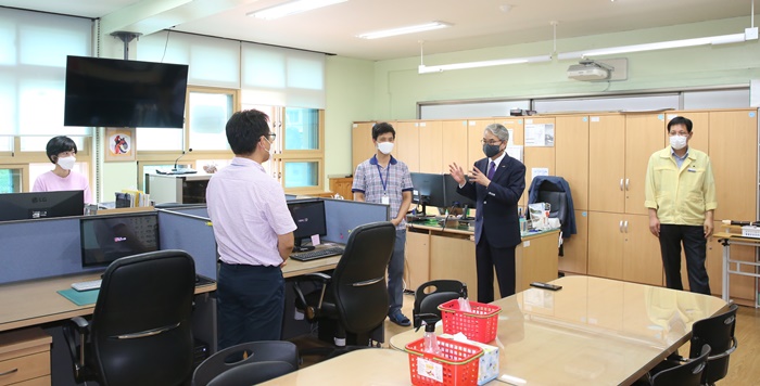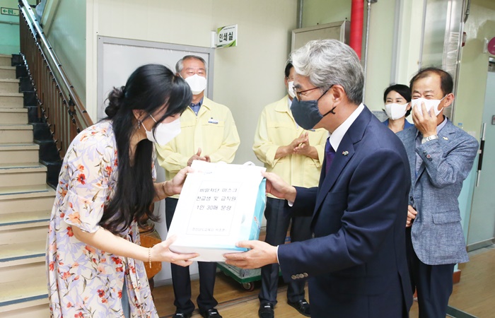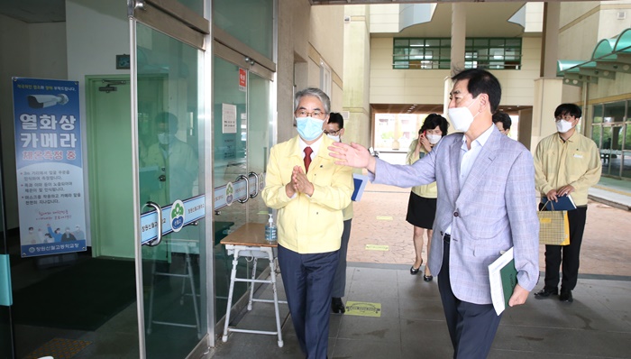 [½Ã»çÄÚ¸®¾ÆÀú³Î=Á¤Á¾¹Î ¼±ÀÓ±âÀÚ] ¹ÚÁ¾ÈÆ °æ³²µµ±³À°°¨ÀÌ 1ÀÏ °ÅÁ¦Áö¿ª ÃʵîÇб³¸¦ ¹æ¹®ÇØ Çб³ ¹æ¿ª ÇöȲÀ» Á¡°ËÇϰí, Çб³ ³» °¨¿° ¿¹¹æÀ» À§ÇÑ ¹æ¿ª ´ëÃ¥°ú ÇÐ»ç ¿î¿µ °È ¹æ¾È ¸¶·ÃÀ» Áö½ÃÇß´Ù.