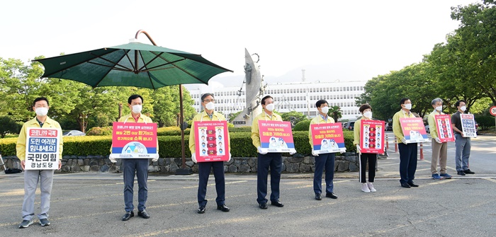 | ±¹¹ÎÀÇÈû °æ³²µµÀÇȸ ÀÇ¿øµéÀÌ °æ³²µµ Äڷγª19 Á¾ÇÕ»óȲ½ÇÀ» ¹æ¹®ÇØ ±Ù¹«ÀÚµéÀ» °Ý·ÁÇϰí ÀÖ´Ù. |