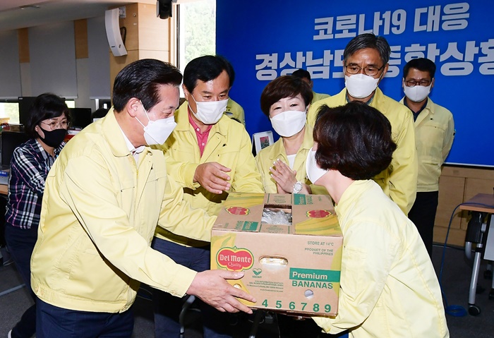 ¶ÇÇÑ, °æ³²µµ Äڷγª19 Á¾ÇÕ»óȲ½ÇÀ» ¹æ¹®ÇØ 24½Ã°£ 2±³´ë·Î ±Ù¹«Çϰí ÀÖ´Â Á÷¿øµéÀ» °Ý·ÁÇϰí, ÈûÀ» ÇÕÃÄ À§±â¸¦ ±Øº¹ÇÏÀÚ°í ´çºÎÇß´Ù.