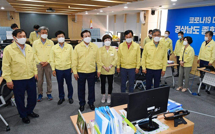 | ±¹¹ÎÀÇÈû °æ³²µµÀÇȸ ÀÇ¿øµéÀÌ °æ³²µµ Äڷγª19 Á¾ÇÕ»óȲ½ÇÀ» ¹æ¹®ÇØ ±Ù¹«ÀÚµéÀ» °Ý·ÁÇß´Ù. |