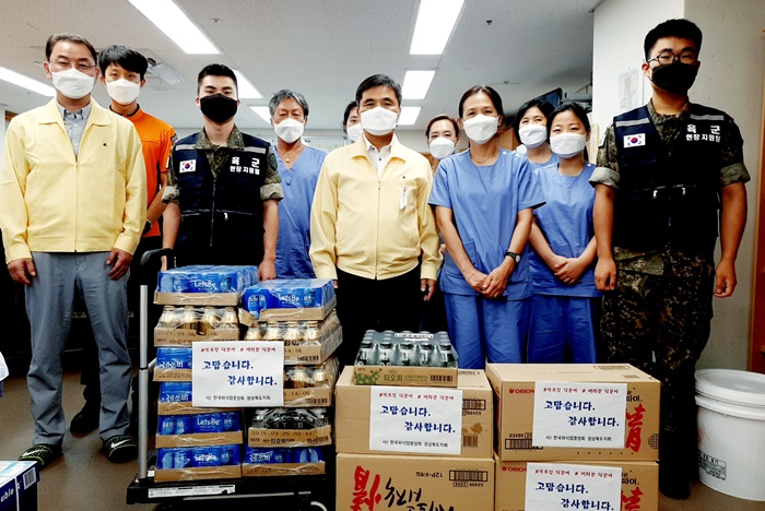 [½Ã»çÄÚ¸®¾ÆÀú³Î=±è¿¬ÇÐ ±âÀÚ] °æºÏ »ýȰġ·á¼¾ÅÍ¿¡¼ Äڷγª19 È®»ê¹æÁö¸¦ À§ÇØ È¯ÀÚÄ¡·á¿Í Áö¿ø¾÷¹«¿¡ ÃÖ¼±À» ´ÙÇϰí ÀÖ´Â ±Ù¹«ÀÚµé ÀÀ¿øÇϱâ À§ÇÑ °¢°èÀÇ °Ý·Áǰ ±âºÎ°¡ À̾îÁö°í ÀÖ´Ù.