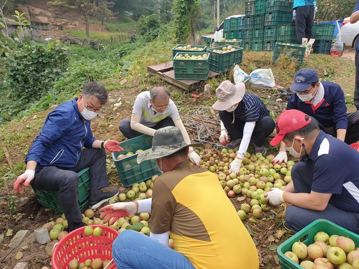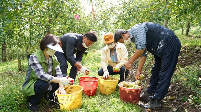 °°Àº ³¯ Ãֱ⿬ °æºÏ³ó¾÷±â¼ú¿øÀåÀ» ºñ·ÔÇÑ Á÷¿ø 30¿© ¸íÀº û¼Û±º Áøº¸¸é »ç°úÀç¹è ³ó°¡¸¦ ã¾Æ ÅÂdzÀ¸·Î ¾²·¯Áø »ç°ú³ª¹« ¼¼¿ì±â, ³«°ú »ç°ú Áݱ⿡ ±¸½½¶¡À» Èê·È´Ù.