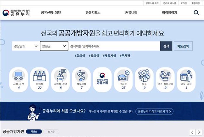 [½Ã»çÄÚ¸®¾ÆÀú³Î=Á¤Á¾¹Î ¼±ÀÓ±âÀÚ] °æ³² ÇÕõ±ºÀº °ø°ø°³¹æÀÚ¿ø °øÀ¯ ¼ºñ½ºÀÎ '°øÀ¯´©¸®' À¥»çÀÌÆ®¸¦ ÅëÇØ °ü³» °øÀ¯ °ø°£ ¹× ½Ã¼³¹° µîÀ» µî·ÏÇØ ±º¹Îµé¿¡°Ô Á¤º¸¸¦ Á¦°øÇϰí ÀÖ´Ù.