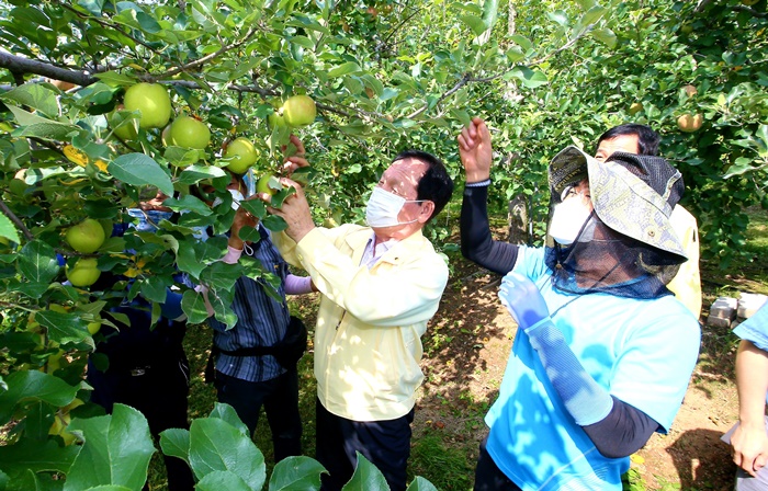 | °í¿ìÇö °æºÏµµÀÇȸÀÇÀåÀº ¹®°æÃâ½Å ¹Ú¿µ¼ µµÀÇ¿ø°ú ÇÔ²² 15ÀÏ, ÅÂdzÀ¸·Î ÇÇÇØ°¡ ¹ß»ýÇÑ ¹®°æ½Ã µ¿·Î¸éÀÇ ³ó°¡¸¦ ã¾Æ ³ó¾÷ÀÎÀ» °Ý·ÁÇϰí Áö¿øÈ°µ¿À» ÆîÃÆ´Ù |