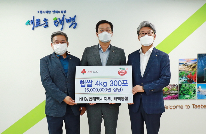[½Ã»çÄÚ¸®¾ÆÀú³Î=À̰æÁ÷ ±âÀÚ] NH³óÇùŹé½ÃÁöºÎ(ÁöºÎÀå ±èº´¿ë)¿Í Źé³óÇùÁ¶ÇÕ(Á¶ÇÕÀå ±èº´µÎ), Źé½ÃûÃâÀå¼Ò(¼ÒÀå ±è¼öÈ£), Źé³óÇù ³²±³Áø »óÀÓÀÌ»ç´Â Äڷγª 19 ±Øº¹À» À§ÇÑ ³ª´® ÇÁ·ÎÁ§Æ®·Î Àú¼ÒµæÃþ °¡±¸¸¦ À§ÇÑ ÇÝ½Ò 4Kg 300Æ÷(500¸¸ ¿ø »ó´ç)¸¦ 17ÀÏ Å¹é½Ã¿¡ ±âŹÇß´Ù.