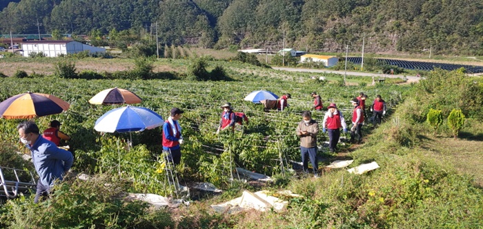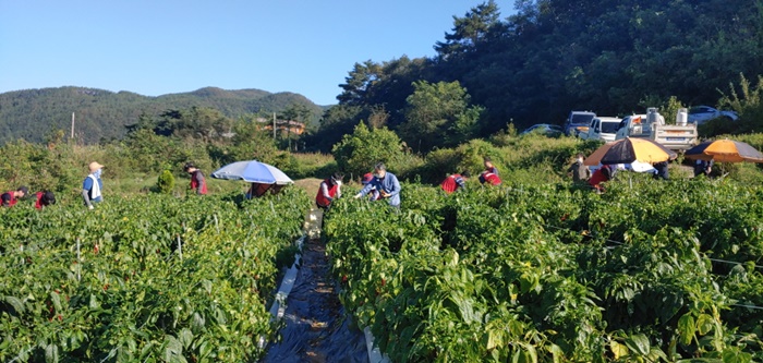 Áö¿øÀ» ¹ÞÀº ³óÀåÁÖ´Â “Äڷγª19 È®»êÀ¸·Î ÀÎÇÑ ³óÃÌ Àη ºÎÁ·À¸·Î Á¦¶§ °íÃß ¼öÈ®À» ¸øÇؼ ¾î·Á¿ü´Âµ¥ ³óÃÌ ÀÏ¼Õ µ½±â¿¡ ¹ß ¹þ°í ³ª¼ÁØ Ã»¿ìȸ ȸ¿øºÐµé ´öºÐ¿¡ ³ó¾÷°æ¿µ¿¡ Å« µµ¿òÀÌ µÇ¾ú´Ù”¸ç °í¸¶¿òÀ» ÀüÇß´Ù.