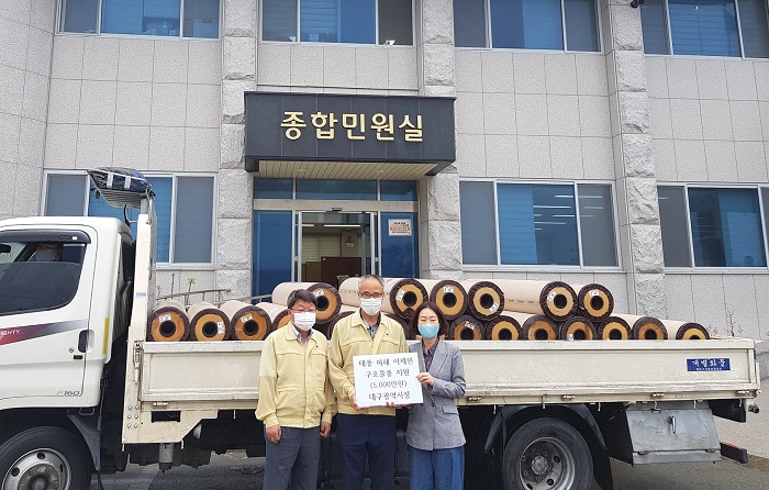[½Ã»çÄÚ¸®¾ÆÀú³Î=À̵¿¿ì ±âÀÚ] °æÁֽà °¨Æ÷À¾Àº Áö³ 18ÀÏ ´ë±¸±¤¿ª½Ã¿¡¼ ÅÂdzÀÇ ÇÇÇØ·Î ÁÖÅà ħ¼öµÈ 26¼¼´ë ÀÌÀç¹ÎÀÇ ÀÔÁÖ Áö¿øÀ» À§ÇØ µµ¹èÁö, ÀåÆÇ, º¸ÀÏ·¯ µî 5õ¸¸¿ø »ó´çÀÇ ¹°Ç°À» Àü´Þ ¹Þ¾Ò´Ù°í ÀüÇß´Ù.