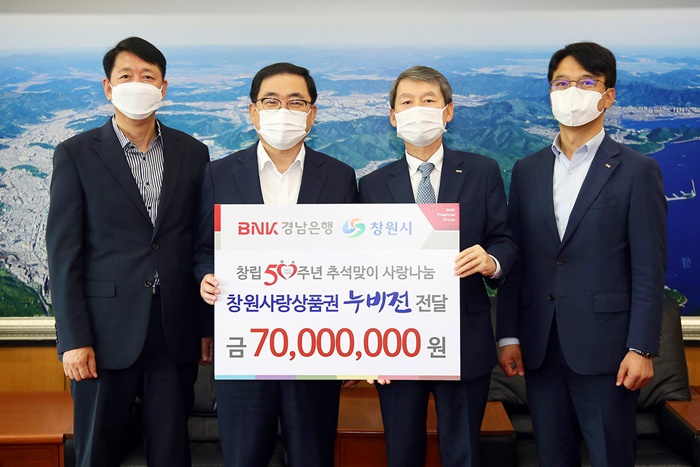 [½Ã»çÄÚ¸®¾ÆÀú³Î=±èÈñ¿µ ±âÀÚ] BNK°æ³²ÀºÇàÀº 21ÀÏ ¹ÎÁ· ÃÖ´ë¸íÀý Ãß¼®À» ¸Â¾Æ â¿ø½Ã(½ÃÀå Ç㼺¹«)¿¡ ‘â¿ø»ç¶û»óǰ±Ç’À» ±âŹÇß´Ù.