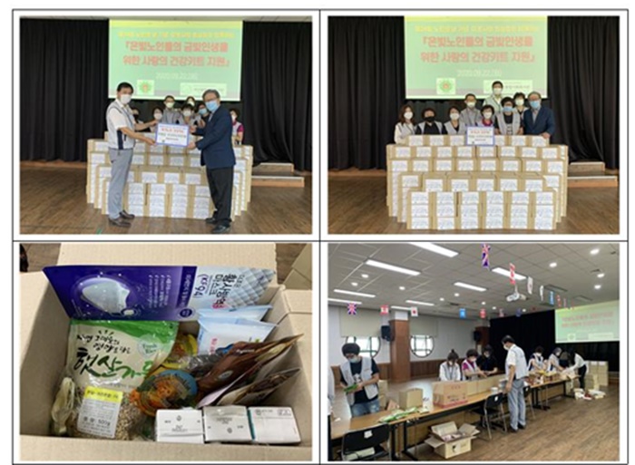 À̹ø Çà»ç Äڷγª19 È®»êÀ¸·Î ÀÎÇØ °Ç°°ú ÀÏ»ó»ýȰ¿¡ ¾î·Á¿òÀÌ ¸¹¾ÆÁø Áö¿ª µ¶°Å³ëÀÎ 200¸íÀ» À§ÇØ ¸é¿ª·Â °È¿¡ ÁÁÀº °Ç°Å°Æ®·Î ±¸¼ºÇßÀ¸¸ç, û½Éȸ ´Ü¿øµé°ú ÇÔ²² ¹°Ç° Æ÷ÀåÀ» ÁøÇàÇß´Ù.