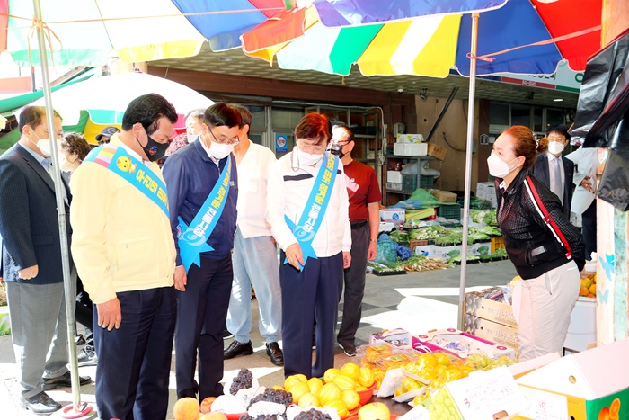 | ¾Èµ¿½Ã´Â Äڷγª19 ¿µÇâÀ¸·Î ¾î·Á¿òÀ» °Þ°í ÀÖ´Â ÀüÅë½ÃÀåÀÇ È°¼ºÈ¸¦ À§ÇÏ¿© 22ÀÏ Á߾ӽŽÃÀå, ¾Èµ¿±¸½ÃÀå, ¿ë»ó½ÃÀå, dz»ê½ÃÀå ÀÏ¿ø¿¡¼ Ãß¼®¸ÂÀÌ ÀüÅë½ÃÀå À庸±â Çà»ç¸¦ ½Ç½ÃÇß´Ù. |