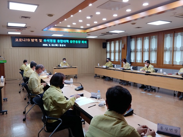 [½Ã»çÄÚ¸®¾ÆÀú³Î=À̵¿¿ì ±âÀÚ] °æ»ê½Ã(½ÃÀå ÃÖ¿µÁ¶)´Â 22ÀÏ ½Ãû ¼ÒȸÀǽǿ¡¼ ÇàÁ¤Áö¿ø±¹Àå ÁÖÀç·Î 15°³ À¾¸éµ¿ÀåÀÌ Âü¼®ÇÑ °¡¿îµ¥ 'Äڷγª19 ¹æ¿ª ¹× Ãß¼®¸íÀý Á¾ÇÕ´ëÃ¥ À¾¸éµ¿Àå ȸÀÇ'¸¦ °³ÃÖÇß´Ù.