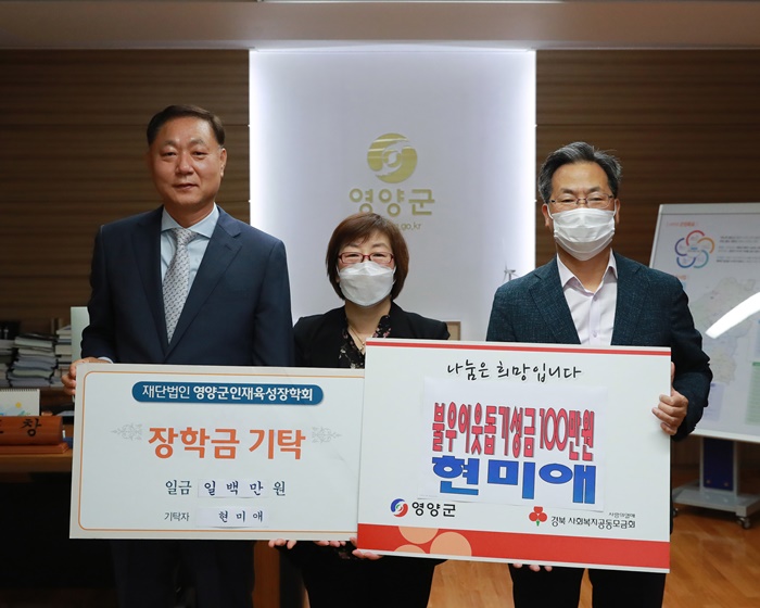 [½Ã»çÄÚ¸®¾ÆÀú³Î=±è¿¬ÇÐ ±âÀÚ] ¿µ¾ç±º Çö¹Ì¾Ö »ç¹«°üÀÌ ÅðÀÓÀ» ¸Â¾Æ 25ÀÏ ¿µ¾ç±ºÃ»¿¡¼ ÃÑ 200¸¸¿øÀÇ (Àç)¿µ¾ç±ºÀÎÀçÀ°¼ºÀåÇÐȸ ÀåÇÐ±Ý ¹× °æºÏ»çȸº¹Áö°øµ¿¸ð±Ýȸ ¼º±ÝÀ» Àü´ÞÇß´Ù.