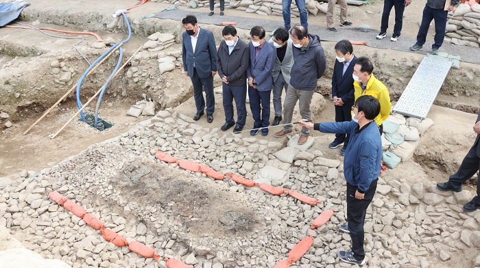 [½Ã»çÄÚ¸®¾ÆÀú³Î=À̵¿¿ì ±âÀÚ] ÁÖ³«¿µ °æÁÖ½ÃÀå°ú ±è¼®±â ±¹È¸ÀÇ¿ø, ¹®ÈÀçû ½Å¶ó¿Õ°æ»ç¾÷ÃßÁø´Ü °ûâ¿ë ´ÜÀå, °æÁֽà ¹®ÈÀç°ú °ø¹«¿øµéÀº 9ÀÏ ‘°æÁÖ È²³²µ¿ 120È£ºÐ ¹ß±¼Á¶»ç’ ÇöÀåÀ» ¹æ¹®Çß´Ù.