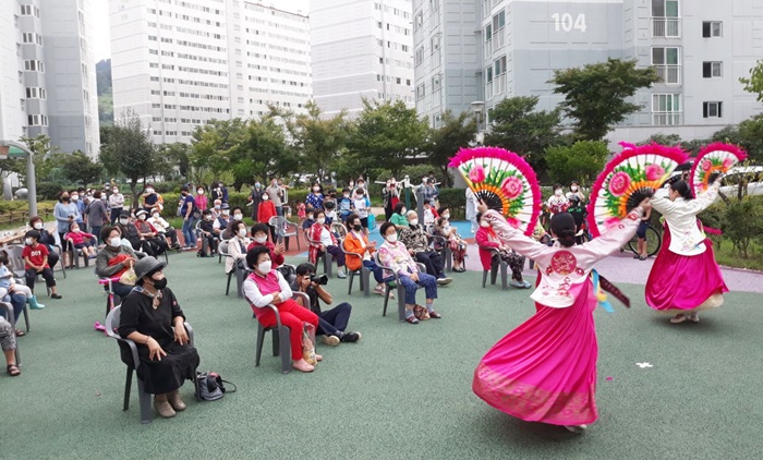 | ‘2020³â ½Å³ª´Â¿¹¼ú¿©Çà Àü±¹ ¼øÈ¸°ø¿¬’ÀÌ Àü±¹À» µ¹¸ç ÁøÇàµÇ°í ÀÖ´Ù. »çÁøÀº ±èÇØÁø¿µLH¾ÆÆÄÆ®¿¡¼ ÁøÇàµÈ °ø¿¬¿¡¼ ºÎäÃãÀ» ¼±º¸À̰í ÀÖ´Â ¸ð½À. |